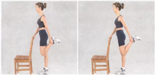 Standing tall, raise one heel towards buttock (grasp above ankle joint)