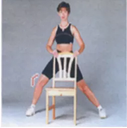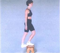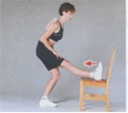 Place heel of one foot up on chair, keeping knee straight and toes pulled back.